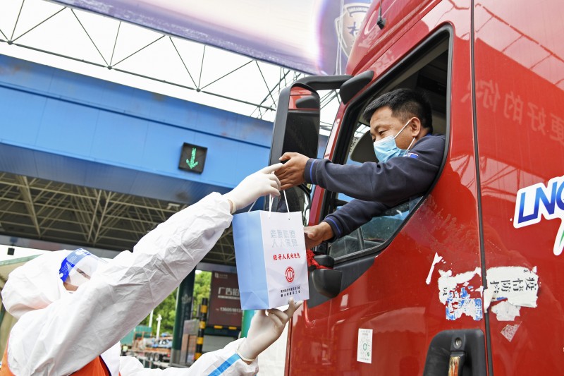 4月18日早上7点,在沪蓉高速横山道口防疫检查点,100份“爱心早餐包”即将发放到下高速的货车司机手中,给舟车劳顿的大家带去经开区的温度,陪伴他们共同开启此次“闭环之旅”。