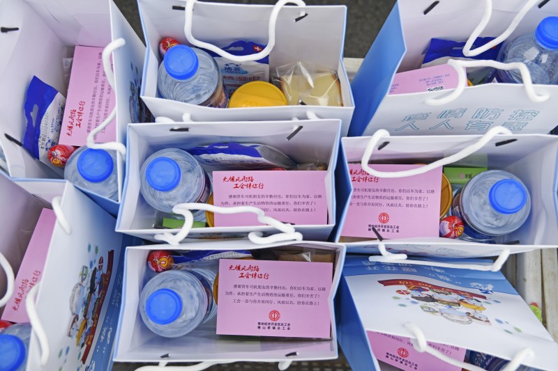 考虑到货车司机们长途跋涉、运输不易,从4月17日到4月27日,经开区总工会联合横山桥镇总工会,每天安排专人运送100份装有水、面包、八宝粥、消毒湿巾等物资的“爱心早餐包”到沪蓉高速横山道口防疫检查点,发放给外地来常的长途货车司机并叮嘱司机做好个人防护、劳逸结合。