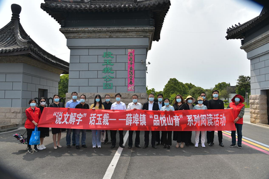 为深入推进第十三届职工读书月活动的开展,丰富职工阅读形式,培养广大职工阅读兴趣,近日,常州市金坛区薛埠镇总工会在花山村举办“说文解字话玉裁”“品悦山音”系列阅读活动。在草木丰盈,绿树成荫的段玉裁公园里,薛埠镇热爱读书的干部职工在花山村党总支书记袁箭峰的引领下,来到苍松翠柏笼罩的段玉裁墓地,凭吊了嘉学派中著名训诂大师段玉裁先生。