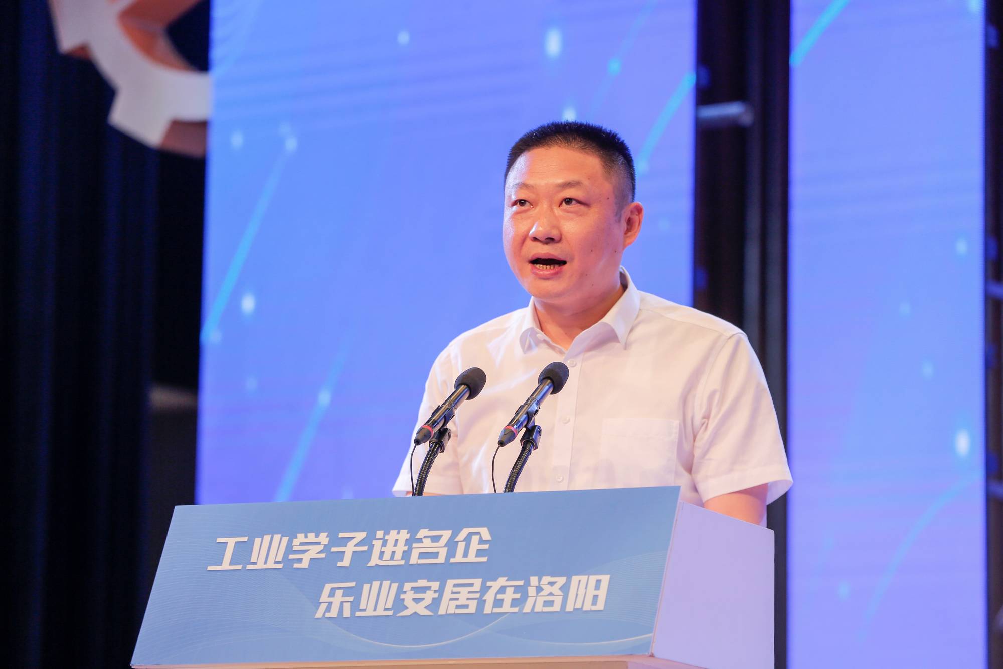 谈行,常州亚通杰威电机有限公司总经理罗杰里奥,常州工业职业技术学院毕业生代表、江苏洛凯机电股份有限公司工具车间车间主任徐澄铭分别发言,欢迎常州工业职业技术学院毕业生到洛阳乐业安居。