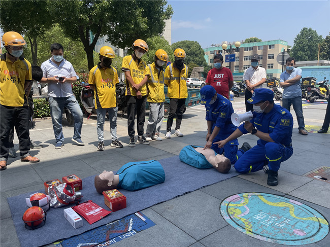 今年6月是第21个全国“安全生产月”,6月14日上午,汉江路社区工联会组织开展消防安全演练和应急救援演练活动,召集辖区范围各行业代表参加,来自环龙置业、各物业公司工作人员、沿街商户、外卖小哥、网格员等共计50余人参加本次演练活动。活动现场,常州蓝天救援对此次消防演练作了详细讲解,并介绍了灭火器的使用方法,以及在发生火灾事故后的基本扑救方法、自防自救措施等消防安全基本知识。现场同时开展应急演练,演练内容包含了灭火器的正确使用方法、对初期火灾的扑灭、人员安全疏导、人员急救等。活动最后,在场人员上前亲自体验了如何正确使用灭火器。