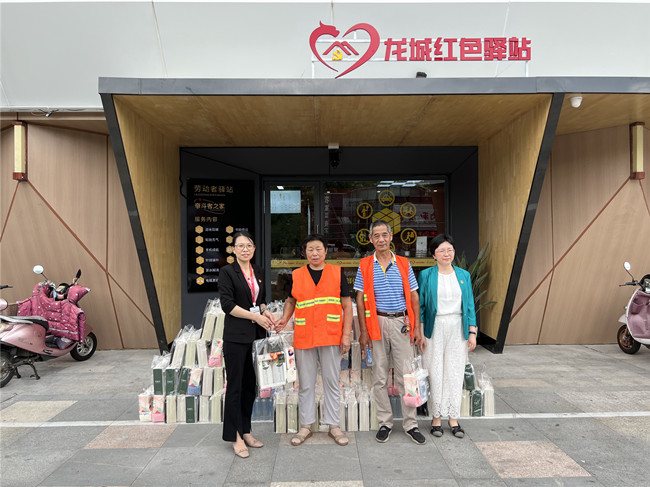 在中国共产党成立101周年之际,为深入推进新业态新就业群体“党建带工建”工作,探索党建引领服务新就业群体的方法和路径,持续擦亮“职爱·凝心”党建品牌,全体人员参观了薛家镇和三井街道两个户外劳动者驿站,现场为新就业群体送上夏令大礼包。同时认真听取工作人员讲解驿站建设情况,并就规章制度、文化建设、配套设施、服务方式等方面进行深入交流,学习探索不同行业结合自身特色建设户外劳动者驿站的先进经验和做法。