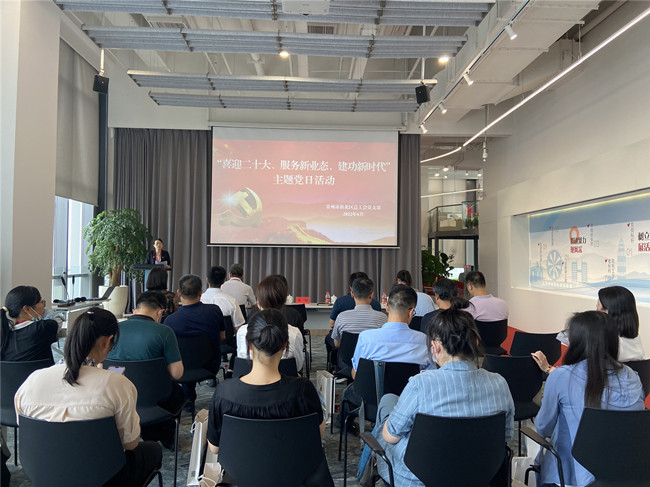 6月27日下午,新北区总工会党支部组织开展“喜迎党的二十大、服务新业态、建功新时代”主题党日活动。区党工委(区委)组织部副部长蒋丽,区总工会党组书记、主席万丽平,区总工会党组成员、副主席尹桂军,区纪委监委第四派驻组张泽出席本次活动。