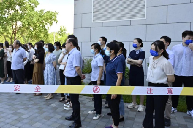 上午10时许,随着演练总指挥一声令下,大楼内某处烟雾警报器被触发,一阵阵火警铃声在楼内各处响起。大楼内全体人员随即按照应急疏散路线,通过两处安全出口实施有序疏散。