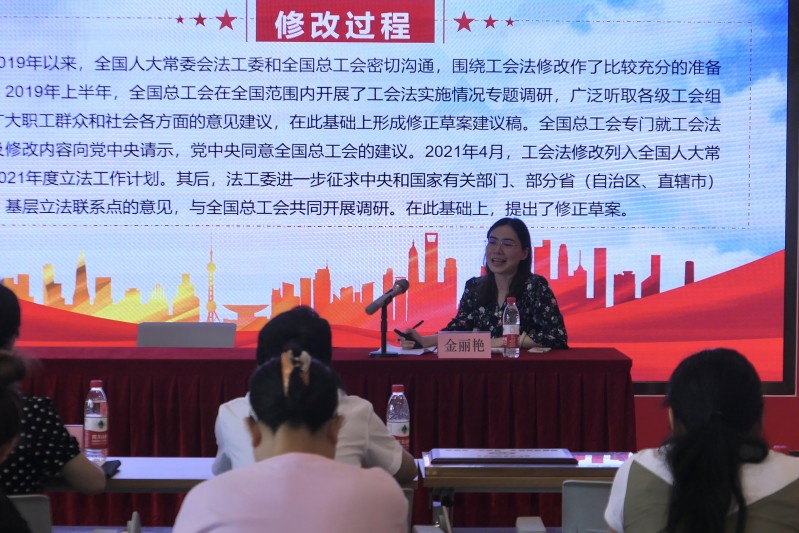 讲座邀请金丽艳律师为大家进行授课,金律师围绕新修订的《工会法》进行了深刻的解读,对关注度比较高的问题进行了重点的解释说明,并结合相关案例生动形象地为大家做了一次《工会法》的宣传教育。此次讲座,对于基层工会干部深化认识,依法开展工会工作具有实际的指导意义。