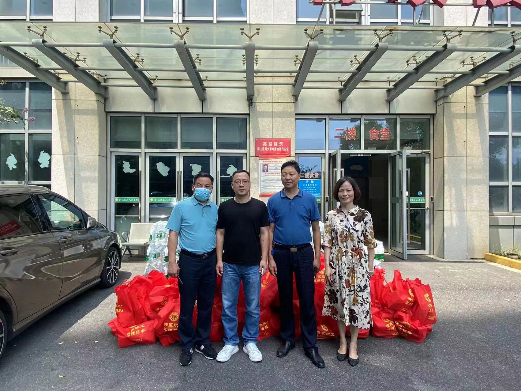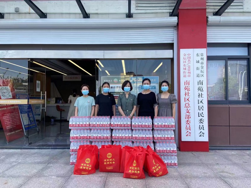 入夏以来,烈日炎炎,持续高温,给各项各业和人们生产生活带来了诸多不便。为切实做好奋战在高温一线工作人员的防暑降温工作,7月13日至14日,常州市金坛区东城街道办事处党工委副书记、总工会主席朱丹俊率领慰问组一行带着矿泉水、洗衣液、毛巾、香皂、花露水、洗发水等夏季日用品,先后前往江苏城东建设工程有限公司、中景博道城市规划发展有限公司2家建筑工地以及金坛公安分局东城派出所、金坛城管东城中队、第二人民医院等8家单位及辖区奋战在疫情防控一线的各村、社区工作人员进行夏季高温慰问,为大家送去清凉和关怀。