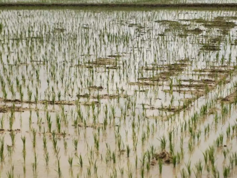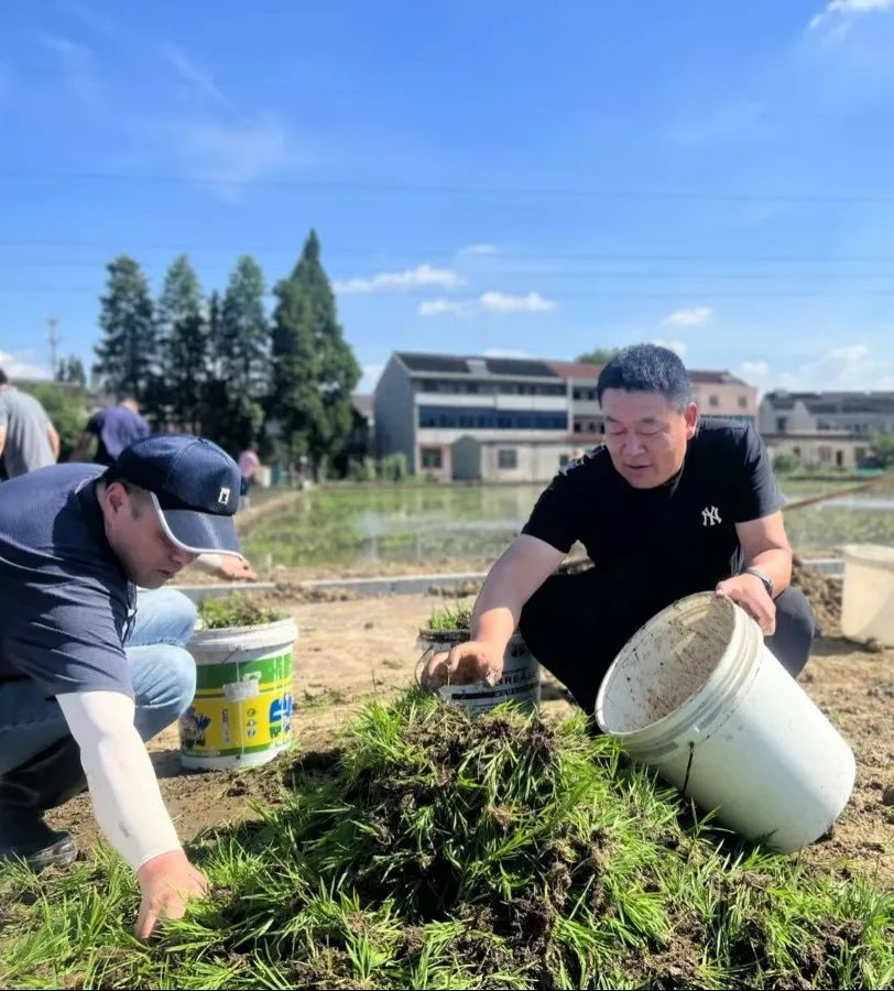 现场虽然烈日炎炎,但是难挡大家参与的热情,全体党员仅用一上午时间,50余亩水田纷纷披上了绿色的“新装”。