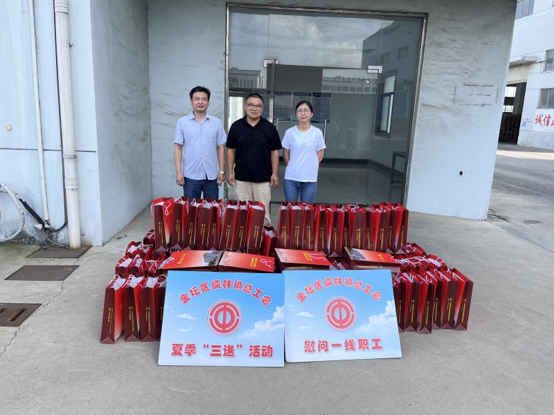 连日来,持续高温天气。为做好高温下的劳动保护工作,切实维护职工劳动安全健康权益,把工会组织的关爱送到一线职工心坎上,7月18日下午,常州市金坛区儒林镇总工会一行先后来到常州金盾物业有限公司和常州源美科技新材料有限公司向奋斗在高温一线的工作者们表示衷心感谢和亲切慰问,并送上清凉油、牙刷牙膏、毛巾、洗发水等200份防暑慰问品。