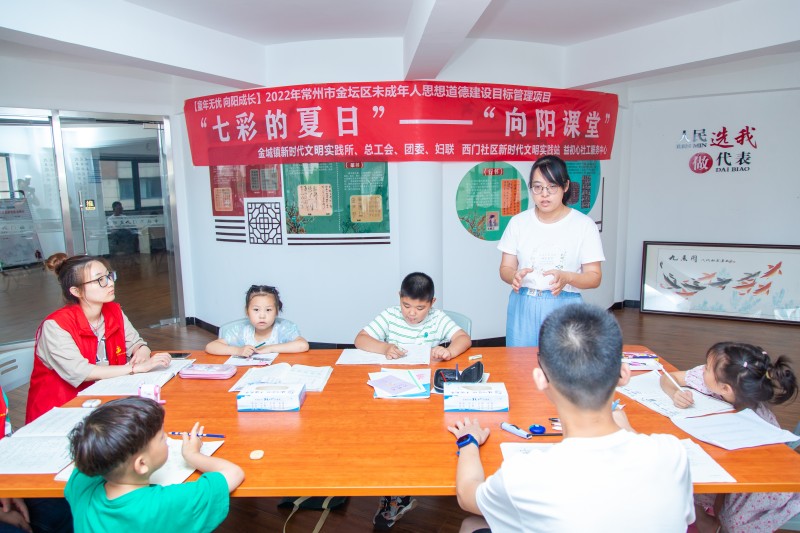 荷风送香气,竹露滴清响。近日,在常州市金坛区金城镇西门社区的大力支持下,益初心社工服务中心开展的“七彩的夏日 向阳课堂”夏令营正式启动。这期夏令营主要是为孩子们建立一个良好的学习氛围,培养孩子们自觉性。