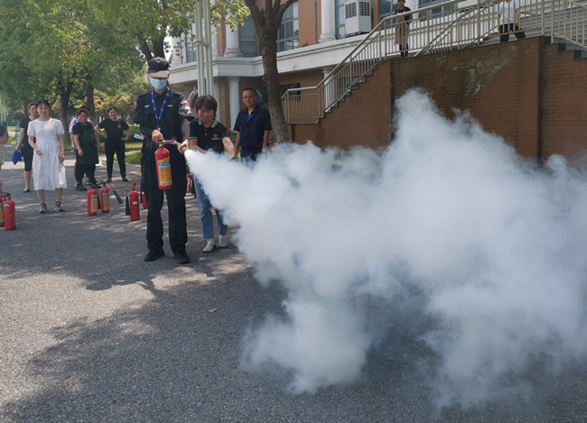 活动中,经警队队长讲解了灭火器的使用原理以及相关的注意事项,并演练了灭火器的使用方法。随后,参加演练的人员亲自体验了现场灭火的过程,按照灭火的步骤和方法,将燃起的浓烟大火成功的迅速扑灭,做到沉着冷静的面对突发现象。最后,现场演练负责人总结本次消防演练对于现场突发情况处理的重要性,并强调对于现场火灾应以“预防为主,防消结合”的措施。