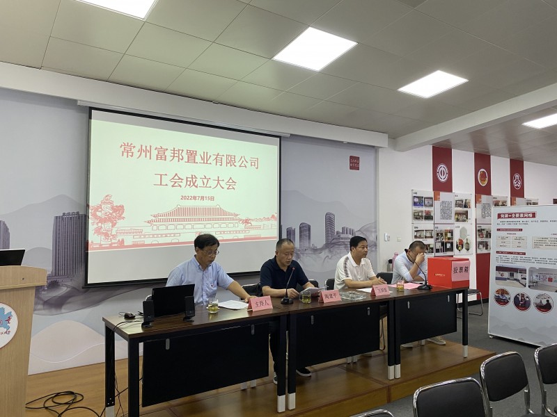 为更好地推动楼宇企业的党建带工建、工建促党建工作,打造共建、共治、共享、共赢的楼宇党建新格局,2022年7月15日,常州富邦置业有限公司工会成立暨第一次代表大会在兰陵街道富邦党群服务站4A会议室召开。兰陵街道人大工委主任兼街道总工会主席陶建平、常州富邦置业有限公司总经理万国强等出席了会议。