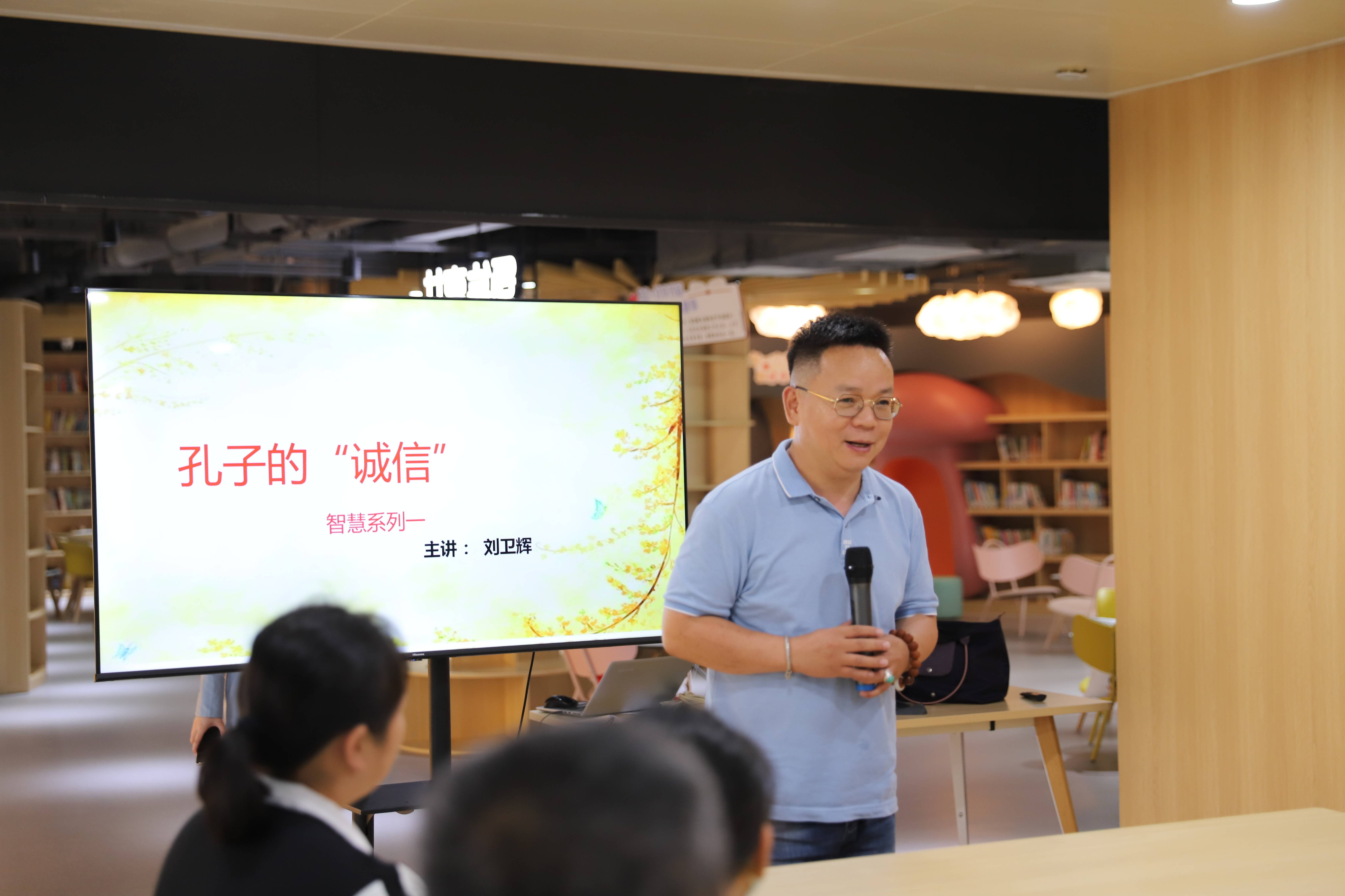 读书分享结束后,武进图书馆智德义馨读书会创始人刘卫辉老师还为大家进行了国学小课堂的讲解,从《论语》典故深入浅出地讲述了“小故事、大道理”,在场的大小朋友们都表示受益匪浅。