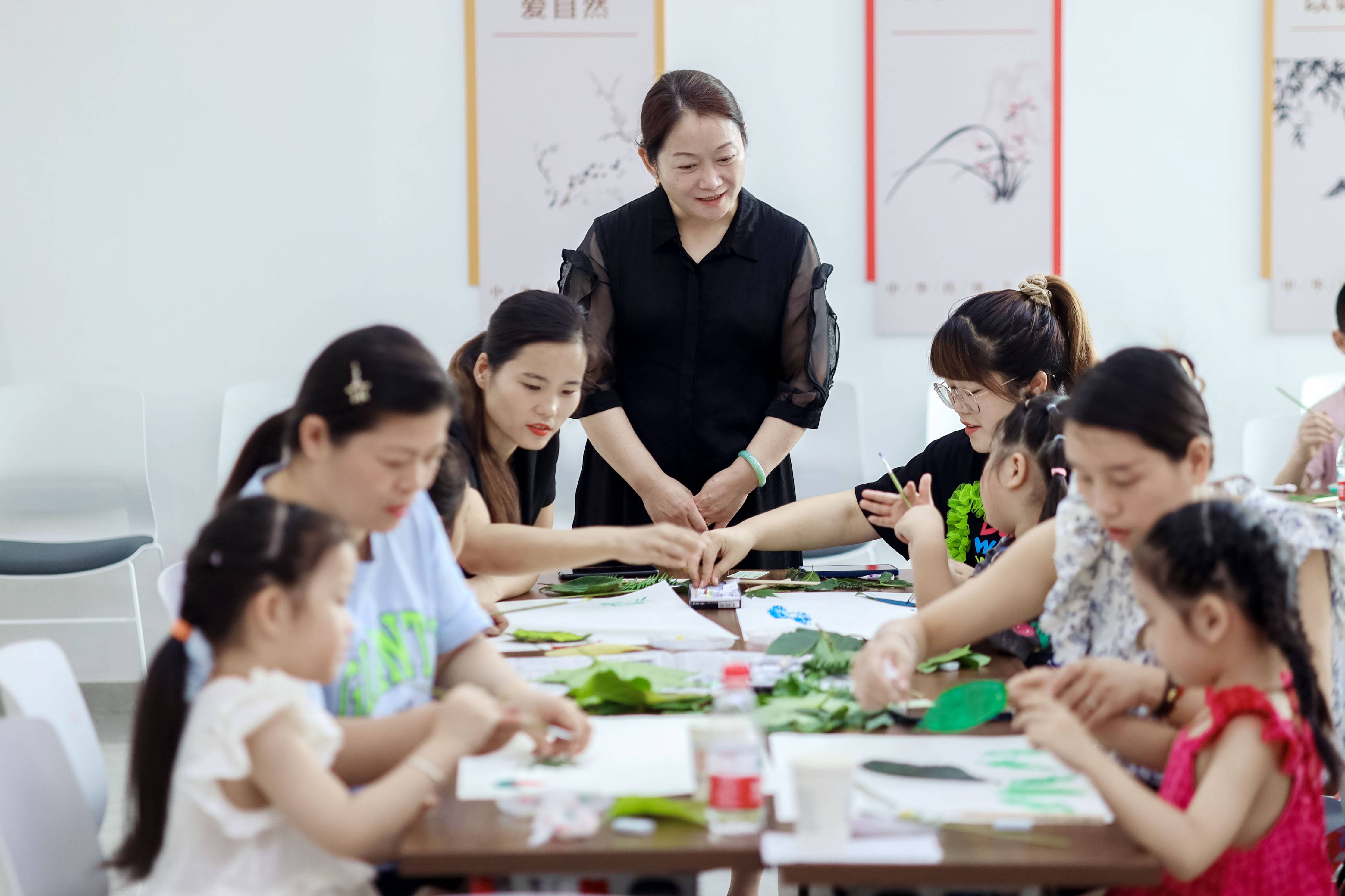 武进职工心理服务中心、馨香心理咨询工作负责人吴美娟和洛阳中心小学老师张雪芬指导10组家庭利用收集的树叶进行拓印绘画。小朋友们完成绘画作品后,老师让每一位家长和孩子分享自己所画的作品,同时根据情况进行点拨,为家长们分析小朋友的心理状态。完成树叶拓印画后,孩子们还纷纷体验了沙盘心理辅导。通过此次团体心理辅导活动,不仅增进了亲子感情,还让家长对孩子的心理有了进一步的了解。