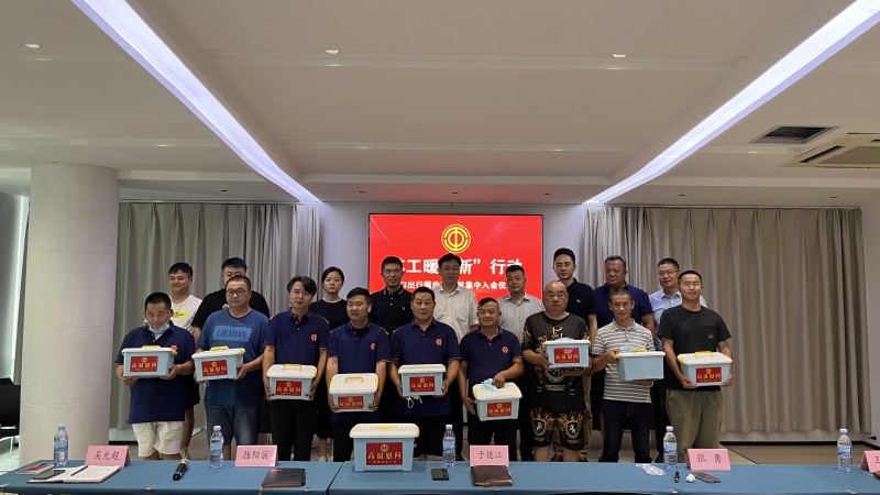 于德江代表市总工会向T3出行武进地区运营商——常州通有汽车服务有限公司颁发工会委员会牌匾,并为在场的网约车司机代表发放高温慰问品。