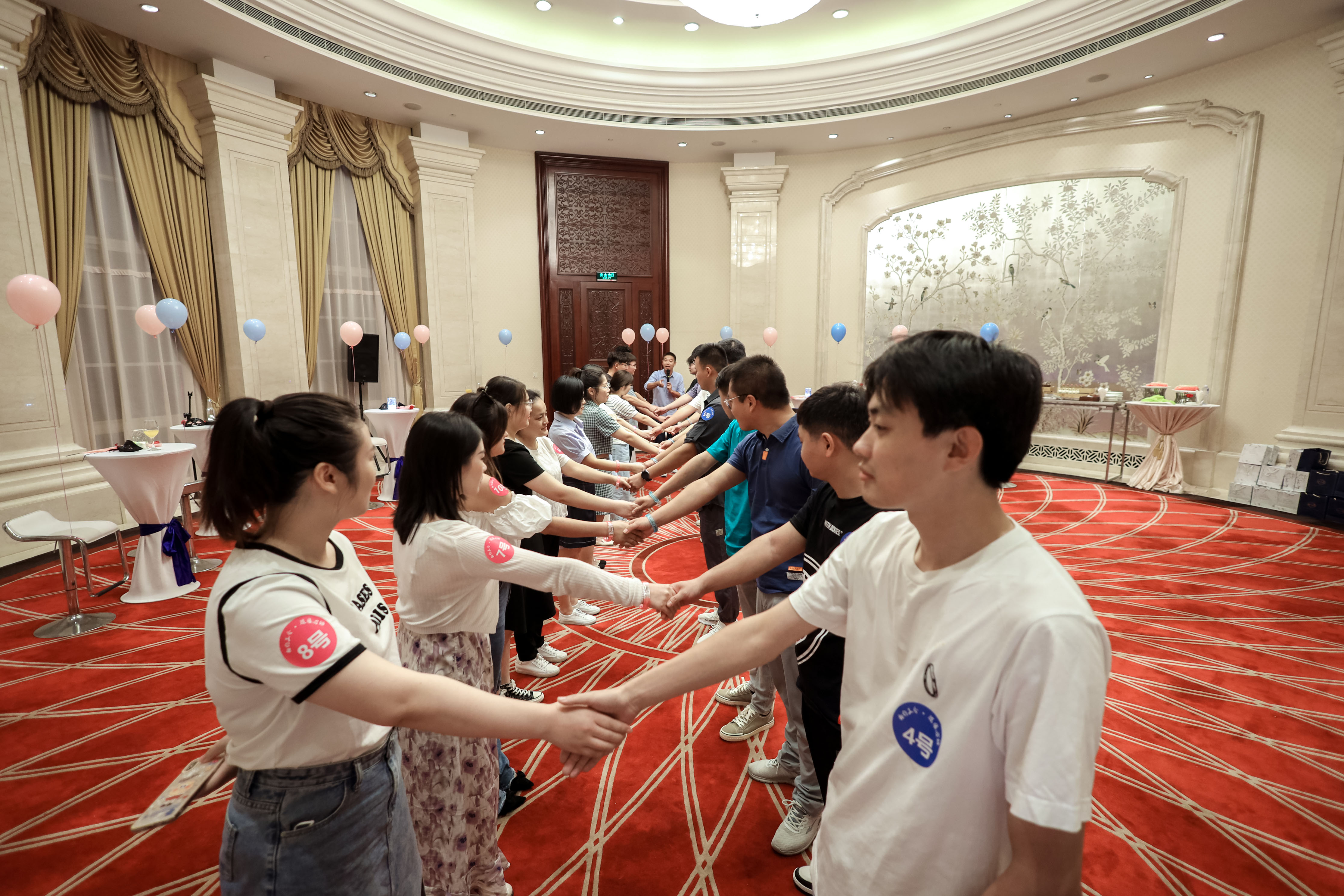接着游戏老师带领大家做了“破冰”系列游戏,从开始的握手介绍、团队合作赛、团队对抗赛等一系列精心策划的互动游戏让青年男女们既快速熟悉了彼此、又充分展示了自己。在心愿纸飞机环节,大家把自己的七夕心愿写在纸飞机上,飞向自己心仪的对象。最后在互赠鲜花环节,男女嘉宾们纷纷把手里的玫瑰送给了对方,并留下了联系方式。