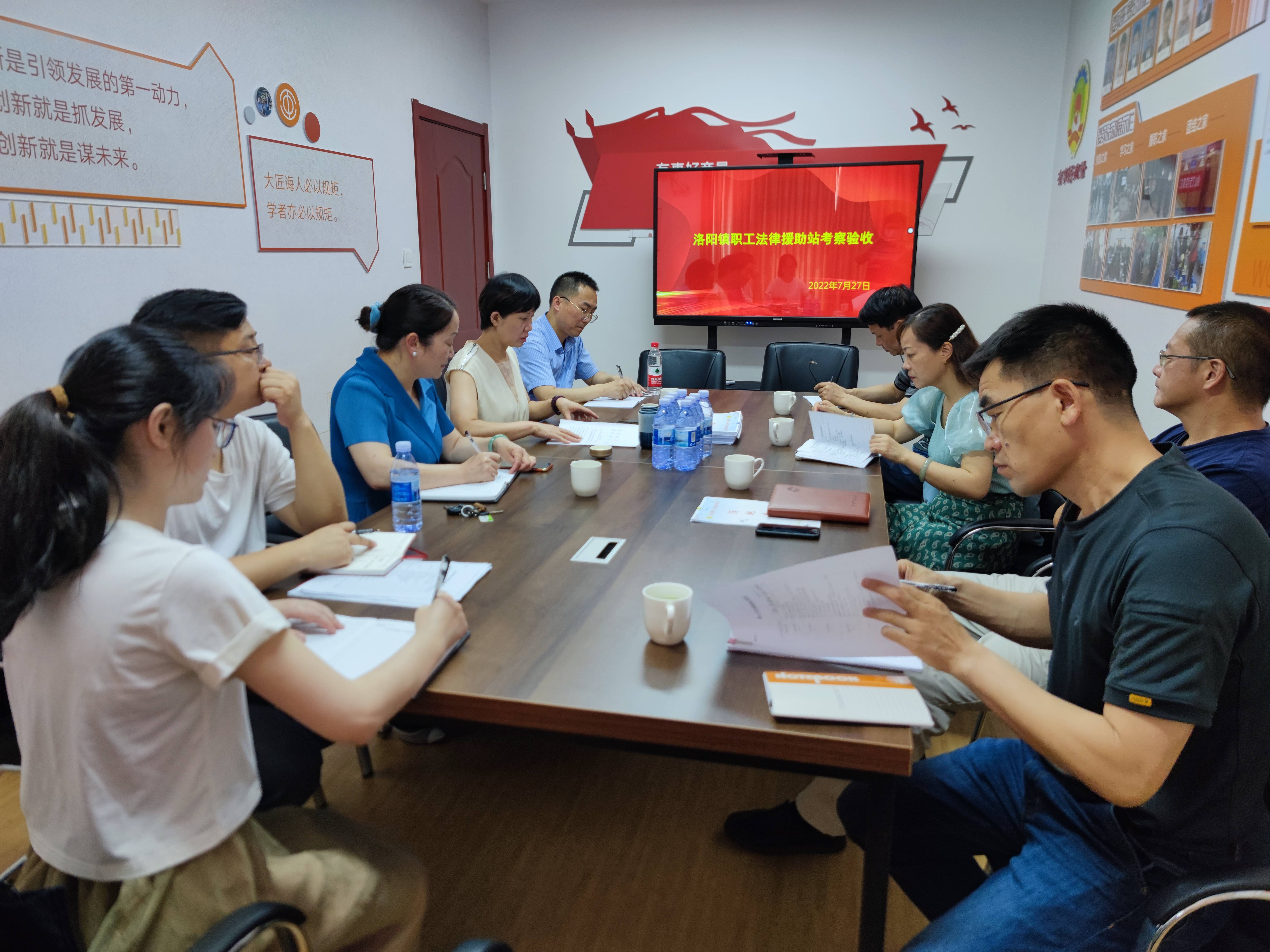 7月27日下午,应江苏省总工会选树“三化”建设成效明显职工法律援助中心(站)申报活动要求,由美彩国际副主席王红、常州市司法局法援处处长陈小吉带队验收洛阳镇职工法律援助站建设情况。区总工会副主席朱宏英、镇总工会主席费叶青等陪同验收。