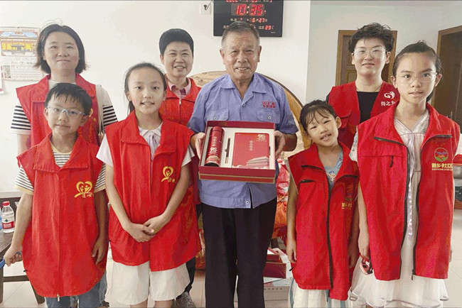 为庆祝中国人民解放军建军95周年,牢记革命功臣,发扬光荣传统,道乡社区联合新北区得之为老服务中心组织社区党员代表、青少年学生代表走访慰问社区退役老兵。