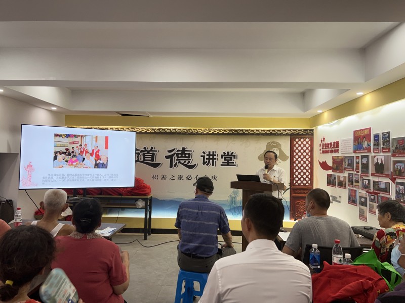 为大力弘扬中华民族的道德力量和社会主义核心价值观,放大榜样的力量,用“身边人讲身边事,身边事教身边人”的方式,传递道德的强大正能量。7月29日下午,开展了一期道德讲堂进小区活动,宣扬身边好人和道德模范事迹,本次活动主题:“学模范精神,做有德之人。”