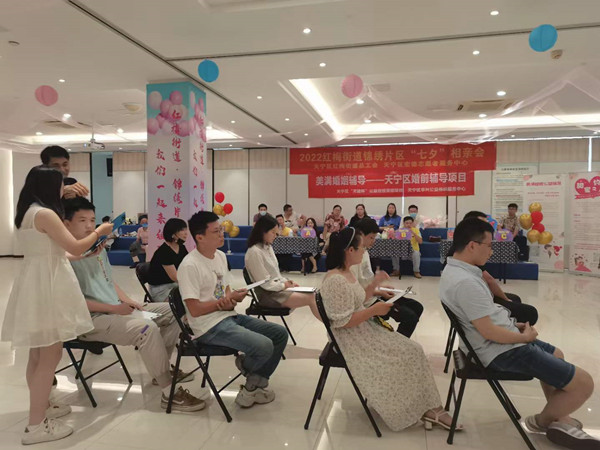 随着社会生活节奏的加快,人与人之间的交流、情感沟通的时间逐步减少,自然择偶的机会也相应减少,适龄青年择偶问题日益突出,已成为当今社会的一个重要问题。为更好地服务群众,近日,锦绣片社区在红梅街道总工会的指导下,联合天宁区华兴社会工作服务中心、宏德志愿者服务中心、金百社区家务协会,在常州市志愿服务发展中心会议厅开展了“我们一起来组队吧”七夕相亲联谊活动。