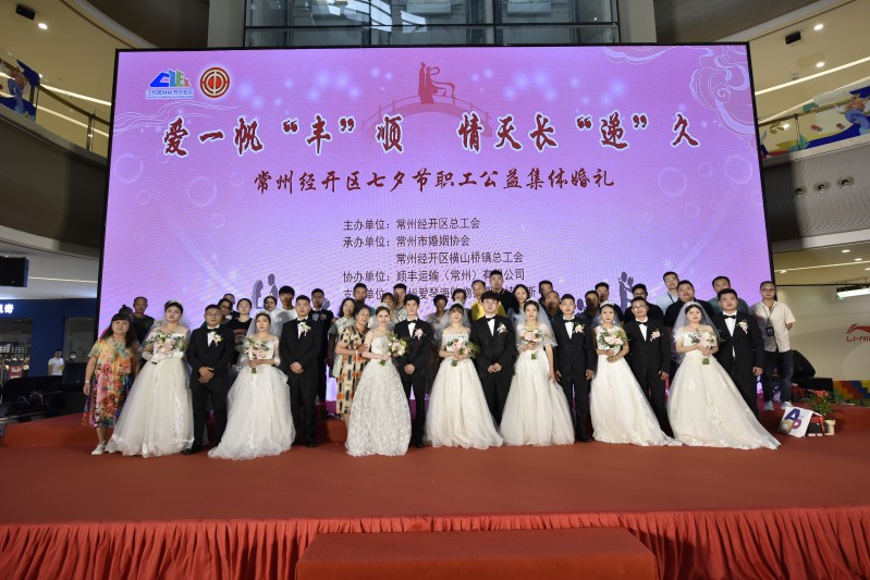 7月30日,经开区总工会联合常州市婚姻协会、横山桥镇总工会,共同为顺丰快递的新人举办集体婚礼,美彩国际党组书记、副主席刘卫国证婚,张培创、顾凤华金婚夫妇赠书祝福,美彩国际、经开区总工会、常州邮政管理局、顺丰快递领导和新人家属、经开区总工会女工委委员一起见证新业态劳动者代表的幸福时刻。