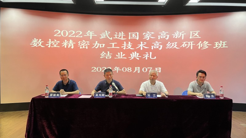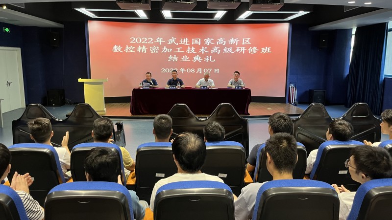 8月7日,武进国家高新区数控精密加工技术高级研修班举行结业仪式。武进国家高新区党群工作部副部长、总工会副主席吴允超,常州机电职业技术学院机械工程学院院长刘江、副院长蔡福海,常州创胜特尔数控机床有限公司技术开发部部长、“江苏技能状元”曹浩,以及全体研修学员一起参加结业仪式。