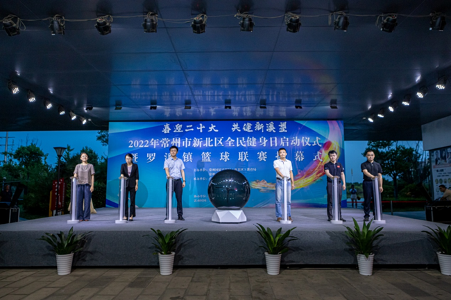 8月8日晚上6点30分,新北区全民健身日暨罗溪镇篮球联赛启动仪式在罗溪镇职工活动中心举行。新北区教育工委书记、教育局局长张华锋,新北区总工会党组书记、主席万丽平,罗溪镇党委副书记、镇长刘波,常州体育产业集团有限公司副总经理何冰,新北区教育局副局长、文化体育和旅游局局长杨杰、罗溪镇党委副书记汤启斌,罗溪镇党委委员、组织委员汤怀博,罗溪镇党委委员、宣统委员赵刚等出席开幕式并观摩比赛。