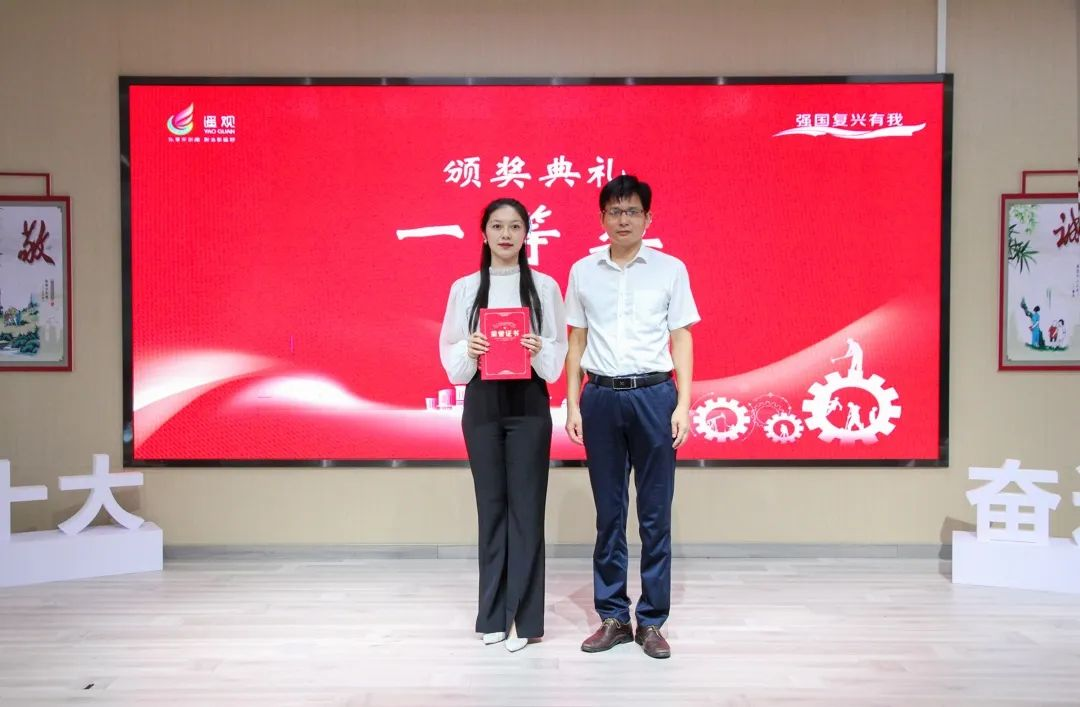 “工人名嘴”颁奖仪式常州市委宣传部讲师团团长何元劲、常州经开区总工会主席赵盟、常州经开区党群工作部副部长陈峰为获奖选手颁奖。