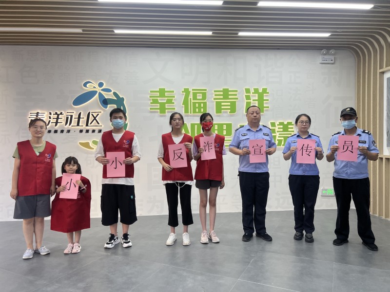 青洋社区通过“红马甲反诈志愿队”以接地气的形式把反诈防骗知识向辖区居民进行宣传,促进形成人人反诈防骗的良好氛围。