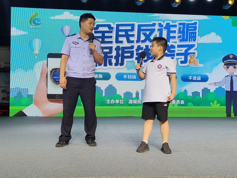 此外,潞城社区工作人员和社区警务室辅警也通过张贴宣传海报、悬挂宣传横幅、放置宣传喇叭的形式在辖区内进行了大范围宣传。在刚举办的中秋晚会上,由社区民警现场为群众讲解一些反诈案例,通过案例让居民群众熟悉一些电信诈骗套路。并通过反诈知识现场问答的形式,加深学习印象。