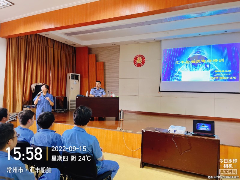 近年来,借助电信技术进行诈骗犯罪案件呈上升态势,诈骗手段层出不穷,诈骗金额越来越大,社会影响越来越恶劣,给社会稳定和人民财产安全造成了严重威胁。为此汇丰船舶在9月15日请来了潞城派出所谭警官来给全体职工剖析电信及网络诈骗分子的伎俩、手段及预防方法现场宣讲。