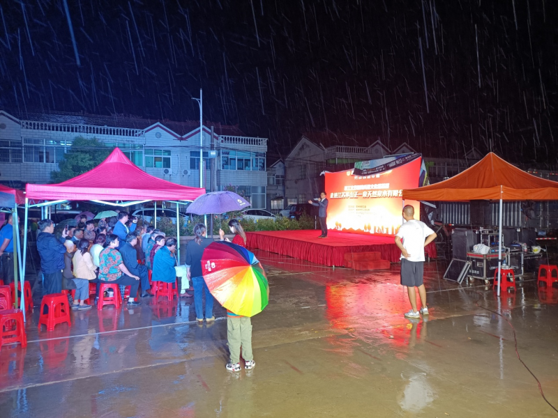 近日,“颂歌献给党”职工文艺轻骑兵送文化进基层文艺演出活动在常州市金坛区薛埠镇东进村广场隆重举办,常州市工人文化宫“职工文艺轻骑兵”的10多名演职人员为老区山乡一线职工群众奉献了一台精彩的文艺演出,薛埠镇方麓村及周边的100多名职工群众现场观看了演出。当晚,虽然天公不作美,下起了雨,但是也挡不住职工的热情,临时搭建的帐篷下坐满了观看演出的职工,帐篷外还有人打着雨伞驻足观看,现场气氛热烈。