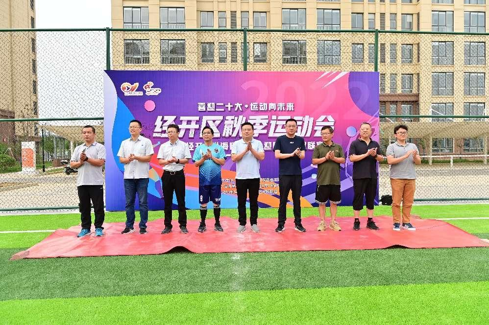 开幕式由经开区党工委副书记罗祎主持。江苏海目星总经理周逸应邀发言,周总希望球员们能赛出水平,赛出成绩。绿茵场上,随着区委常委、经开区党工委杨健书记和经开区管委会于忠俊主任“第一球”的踢出,换上足球“装备”的运动健将们迈着坚毅的步伐昂首走向球场。