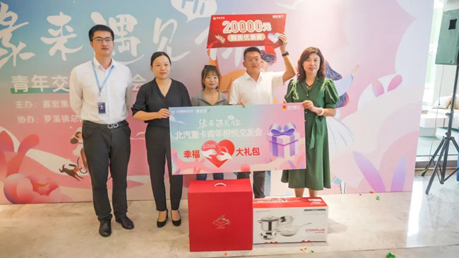本次交友活动吸引了来自罗溪镇各企事业单位的60名单身青年职工参加。活动中,青年职工们敞开心扉、积极互动,大方展示个人魅力,拉近彼此距离。经过两个小时轻松有趣的互动游戏,现场共有两对单身职工牵手成功。北汽重卡分别为牵手成功的青年职工送上精心准备的幸福大礼包。