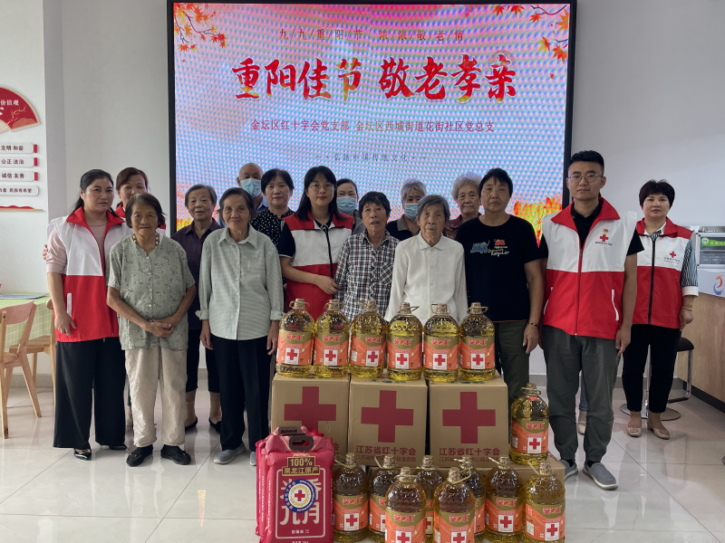 九九重阳节,浓浓敬老情。9月26日下午西城街道花街社区党总支、花街社区联合工会联合金坛区红十字党支部、新天地金色商圈,开展“党建引领聚合力,心系老人暖重阳”重阳节敬老送温暖活动,为社区老人送上祝福和慰问品,大力弘扬中华民族孝亲敬老传统美德,营造欢乐祥和的节日氛围,让他们切身感受到党和政府的关怀、社会的温暖以及人与人之间的真情。
