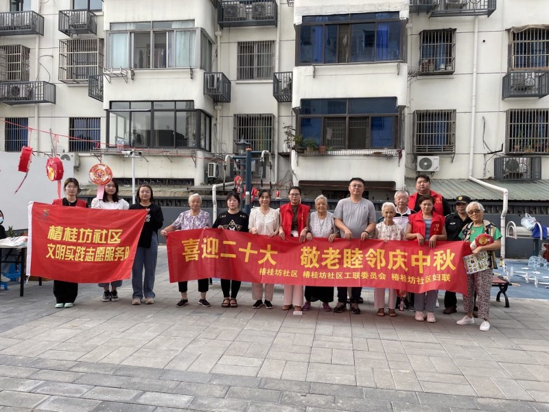 明月清风迎鸿运,桂花香里话团圆,9月9日下午,椿桂坊社区工联会联合老小区物业公司上海金晨、爱心企业北大荒共同举办“喜迎党的二十大