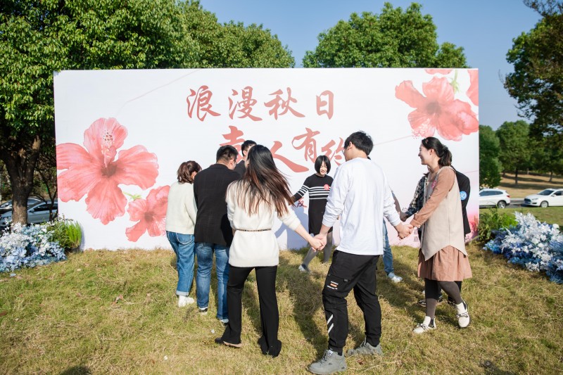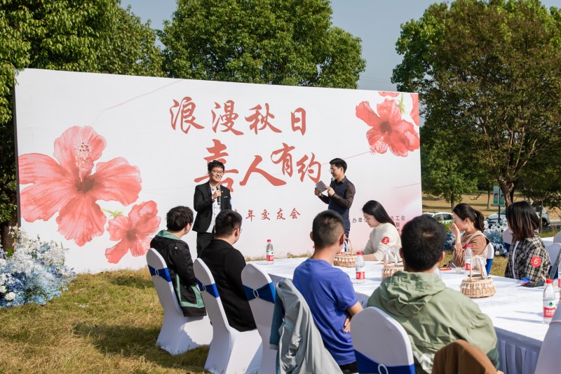 参加活动的青年男女抵达现场后进行签到、分组,在轻松欢快的音乐声中,大家自由交谈、相互认识,欣赏着秋日的湖畔美景,空气中处处洋溢着甜蜜的味道。在趣味十足的破冰小游戏中,男女嘉宾逐渐热络、熟悉彼此,气氛融洽和谐。