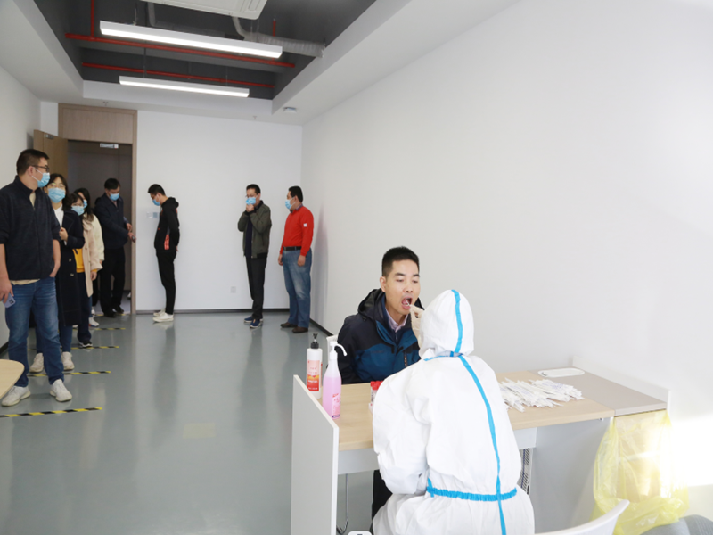 新冠疫情防控工作是一项重要而又艰巨的任务,为有效保障公司员工的身心健康,10月31日上午,常嘉建设集团有限公司工会组织总部大楼所有在岗员工开展核酸检测工作。通过分时段、分部门有序进行核酸采样。与以往不同的是,为员工开展核酸采样的“大白”并不是医护人员,而是经过专业培训的常嘉建设的员工。