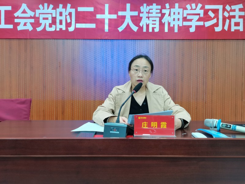 学习会上,湟里镇总工会主席庄明霞传达了党的二十大精神和省、市、区有关会议精神,最后还传达了镇党委对学习宣传贯彻党的二十大精神的要求,一要认真传达学习、确保学深悟透;二要做好宣传宣讲,确保氛围浓厚;三要狠抓贯彻落实,确保落地见效。