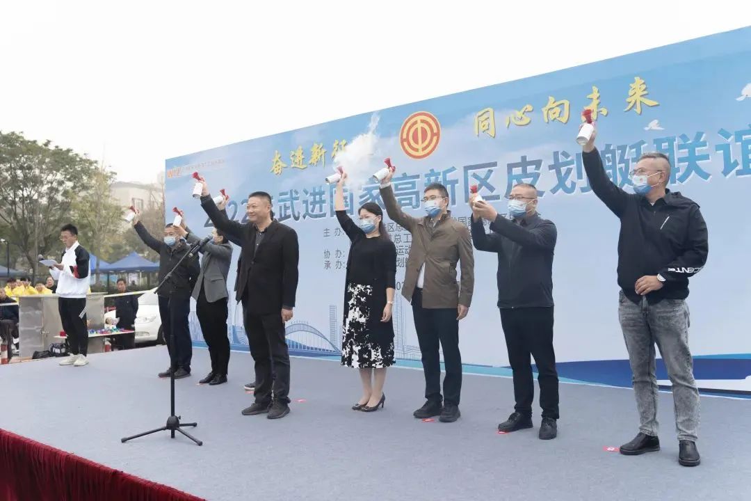 以赛联谊、以赛聚力。近日,武进国家高新区举办“奋进新征程、同心向未来”皮划艇联谊赛,96名运动员“艇”进“两湖”时代。区总工会党组书记、主席沈涛,区总工会副主席陆惠萍,武进国家高新区党群工作部副部长、总工会副主席吴允超,高新区北区总工会主席朱妮参加活动。