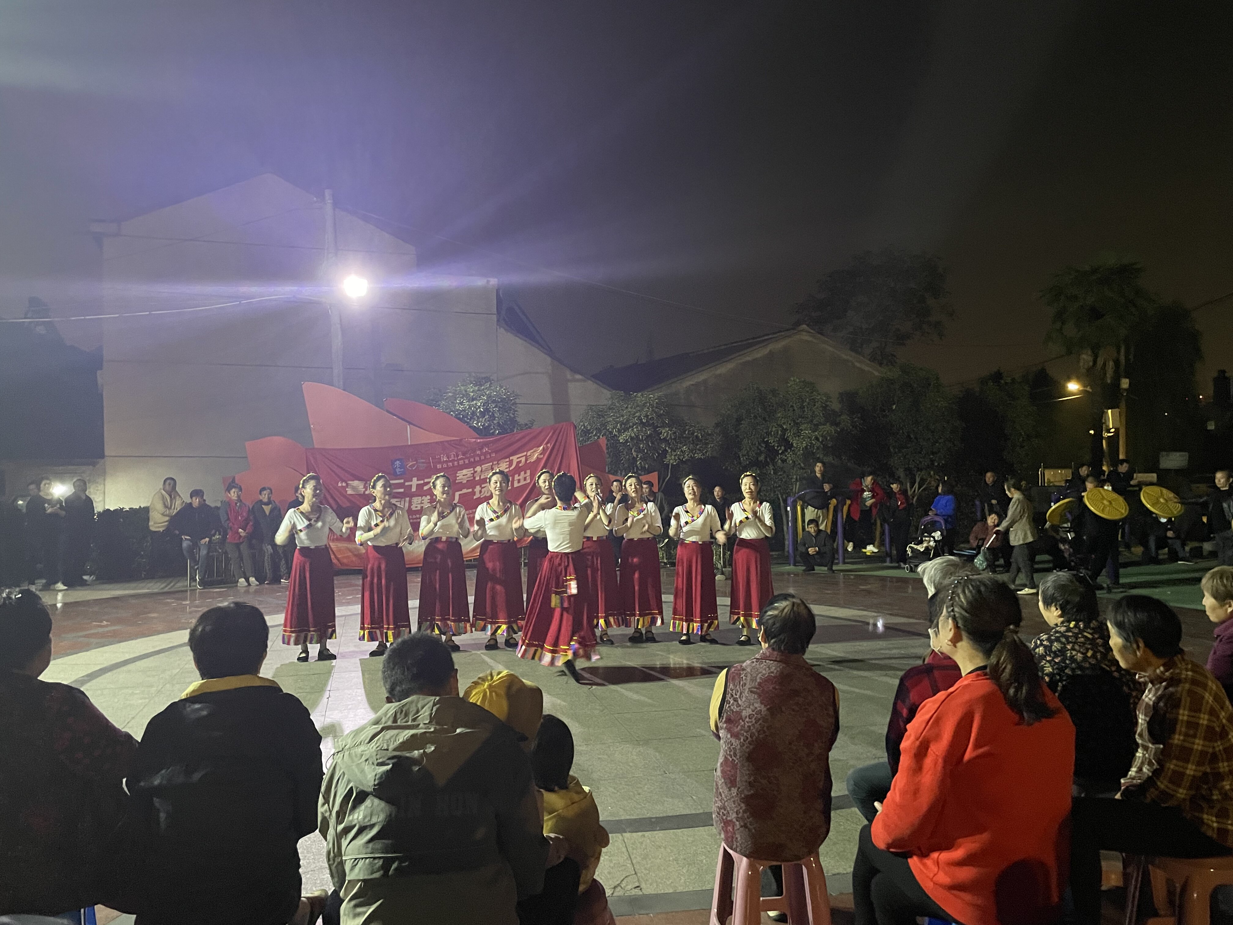 节目由女声独唱《我和我的祖国》拉开帷幕,接着具有藏族文化特色的《格拉桑》、舞蹈、萨克斯等节目赢得了观众的阵阵喝彩,带动了现场欢乐活跃的气氛,活动持续一个小时,前来观看的居民络绎不绝。