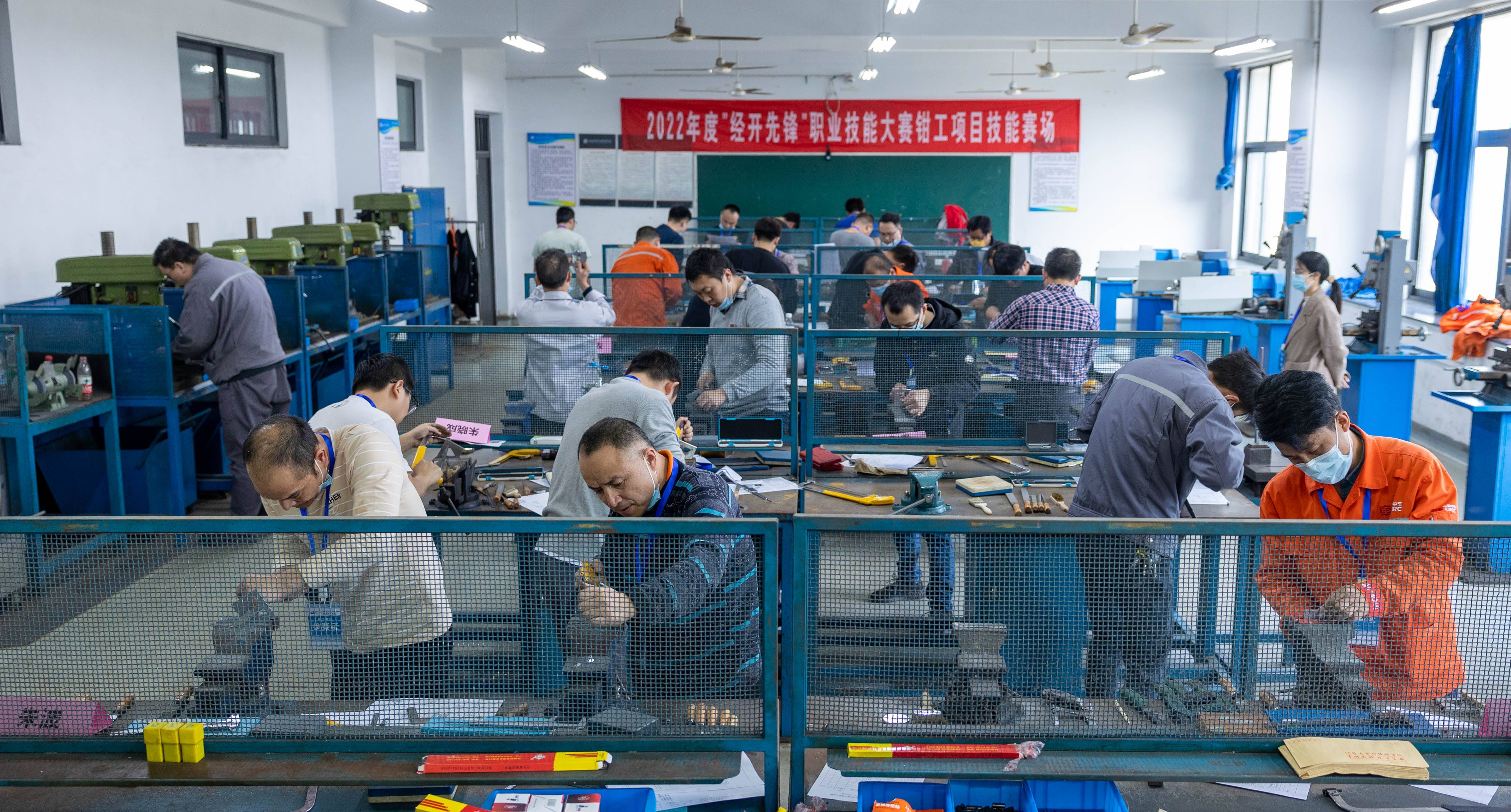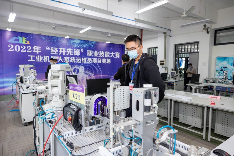 近日,由组织部、社会保障局、总工会联合举办的2022年度“经开先锋”职业技能大赛第二场赛事在江苏省常州技师学院举行。本场比赛共设有钳工、电子商务师、工业机器人运维员3个项目,共352人参赛。钳工比赛现场,选手们需要在规定时间内,按照给定的图纸及相关技术要求,通过手工加工及操作,完成零件的制作及机械结构的装配、检测与调试;电子商务师则重点考核选手图像处理、静态网页设计、市场营销等技能;工业机器人运维员比赛重点考核选手对工业机器人操作、调试、排故及周边设备的联调联试能力。至此,2022年度“经开先锋”职业技能大赛所有项目已全部比赛完毕。评出“经开工匠”6人,“经开技术标兵”12人,“经开技术能手”18人,常州市武进区丁堰街道办事处、常州博瑞电力自动化设备有限公司被评为优秀组织单位。