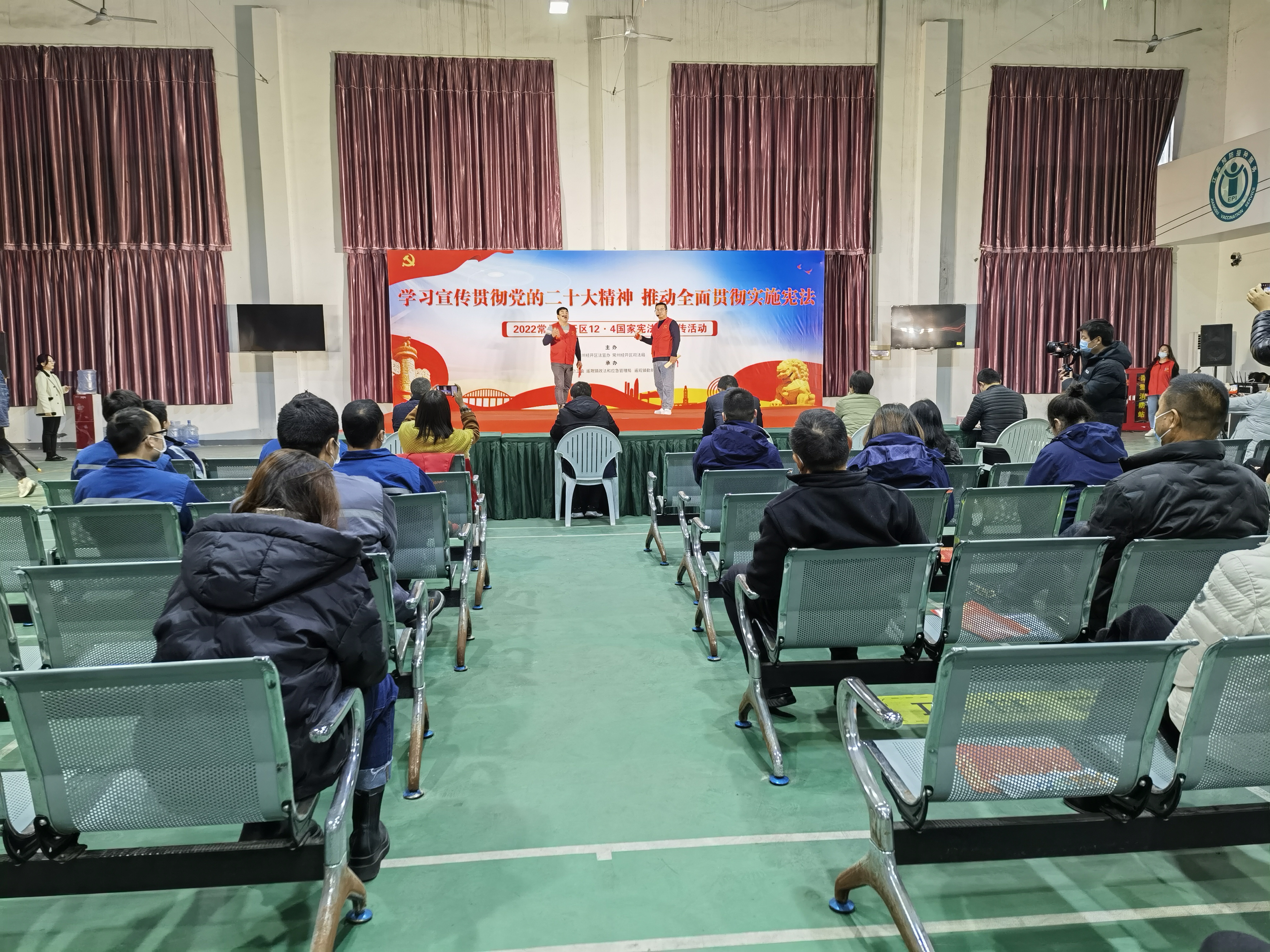 在学习宣传贯彻党的二十大精神之际,我们迎来第九个“12·4”国家宪法日,为引导全体人民做社会主义法治的忠实崇尚者、自觉遵守者、坚定捍卫者。常州经开区法宣办、经开区司法局和遥观镇总工会、遥观镇政法与应急管理局、勤新村委举办“学习贯彻党的二十大精神 推动全面贯彻实施宪法”——2022年常州经开区“12·4”遥观镇国家宪法日宣传活动。为群众送上了一场别开生面的宪法宣传活动。