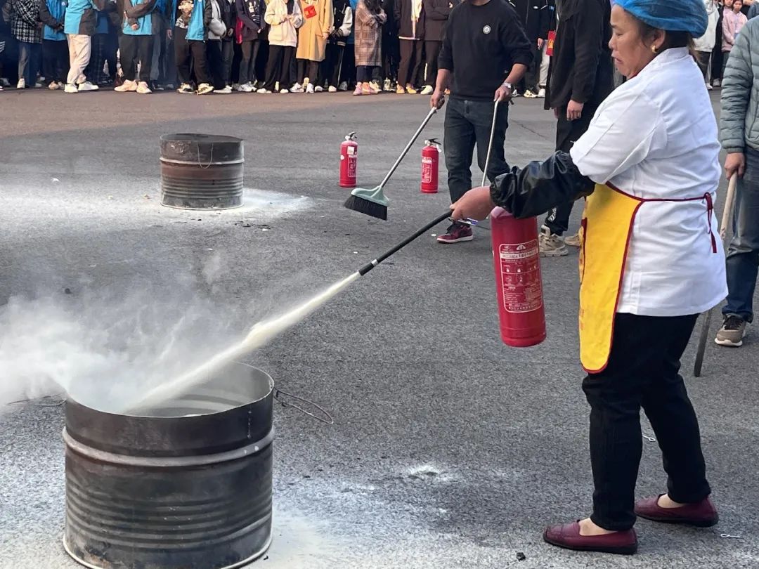 二是开展消防灭火演练。消防安全始于心,莫等“东窗事发”再后悔莫及。安全无小事,时刻都需警钟长鸣。强化消防知识,遵守消防法规是重中之重。消除校园火灾隐患,共同搭建“防火墙”。在学校的安排指导下,教师、学生、宿管、食堂、保安代表现场进行灭火演练,亲自体验如何使用灭火器,提高并锻炼灭火技能。保安、宿管、食堂工作人员和学生分别进行实战。