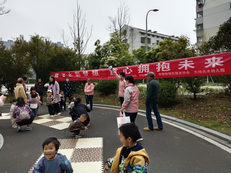 近期,兆丰花苑社区工联会联合新时代文明实践站、妇联、天隆兆丰幼儿园和兆丰花苑社区学雷锋便民服务协会,推进“五社联动”关爱“一小一老”,在月馨苑小区广场开展“放飞七彩梦想 童心拥抱未来”活动,让2-3岁小朋友们和大自然来一次亲密的接触。