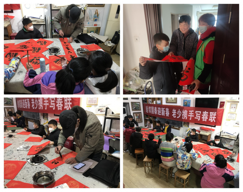 活动中,老人和孩子们摩拳擦掌,想展示一下自己的书法功底,也想为大家送上自己美好祝福。他们先选好自己喜欢的对联词,展纸挥毫,行云流水间,一幅幅载着美好祝福的春联一气呵成。小朋友们在张老师多年的教导下,一个个书法水平也见长,写出的春联也获得在场居民的好评。活动最后,国泰名都社区的社工们还带领青少年给社区的独居老人送上了春联,并关照老人们近期出门要做好防护,注意保护好自己的身体。