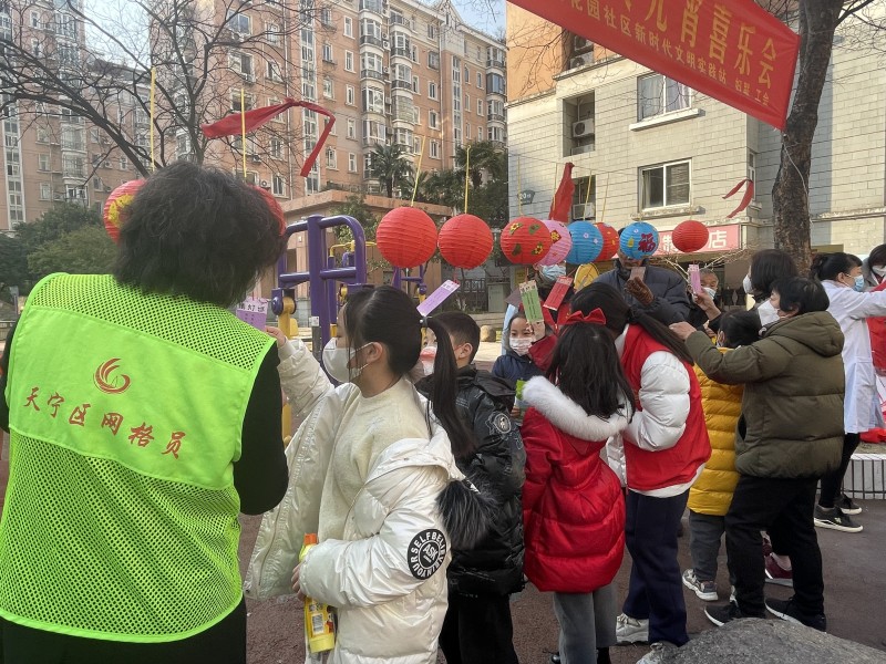 活动现场,挂有灯谜的红灯笼交相辉映,猜不完的灯谜、说不完的吉祥话,欢声笑语此起彼伏,充满浓浓的节日氛围。猜灯谜环节不仅设置有喜闻乐见的字谜、妙趣横生的俗语谜、成语谜,还有关于文明礼仪及传统风俗等知识条目,内容丰富、形式多样。随后,套圈圈、托乒乓球、夹气球等各式各样的趣味竞技游戏将现场氛围推向高潮。大家踊跃参与,比完这项比那项、比完单项比总分,体验到了游戏的快乐、竞争的乐趣。