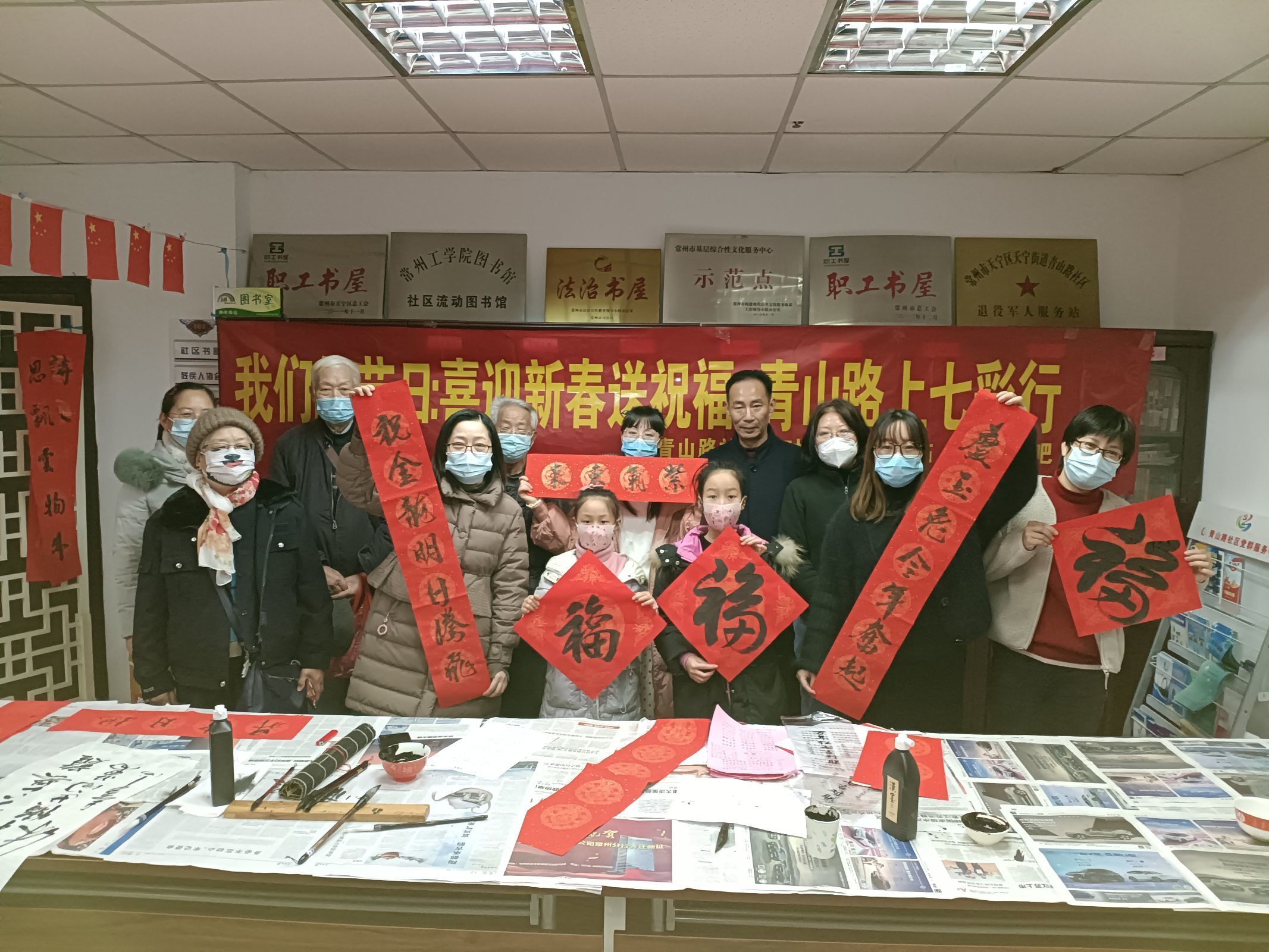 虎去雄风在,兔来喜气浓, 1月10日,青山路社区工联会、便民服务中心联合举办主题为“喜迎新春送祝福 青山路上七彩行”的写春联送祝福惠民行动,用文艺的形式表达敬意、传递祝福。