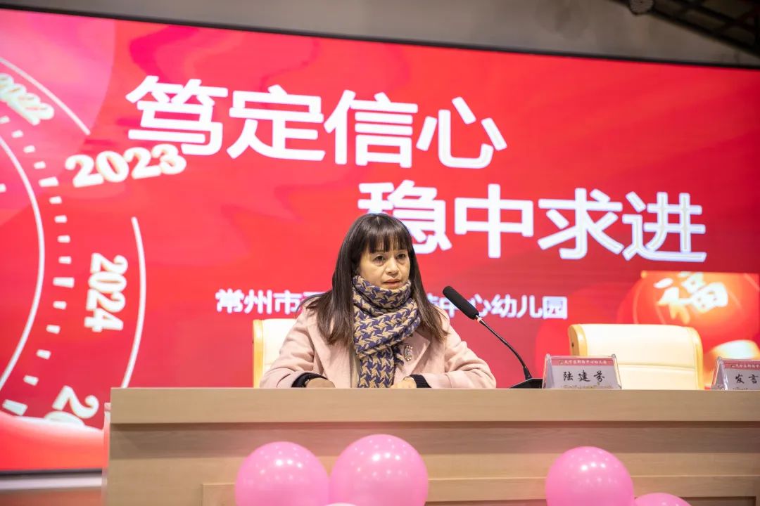 当天上午陆建芬园长主持召开了主题为“笃定信心,稳中求进”的新学期开学工作会议。首先,陆园长对郑幼全体教职工在日常工作中展现出的凝聚力和战斗力表示充分肯定。其次,陆园长从园所管理、师德师风、教师发展、项目研究、夯实筑基、后勤工作等五个方面对全体教职员工做出新学期的要求,明确前进的方向。最后,陆园长勉励教职员工必定以汗水为墨、以实干为笔,崭新的学期,笃定信心,稳中求进,乘风破浪潮头立,谱写教育新篇章。