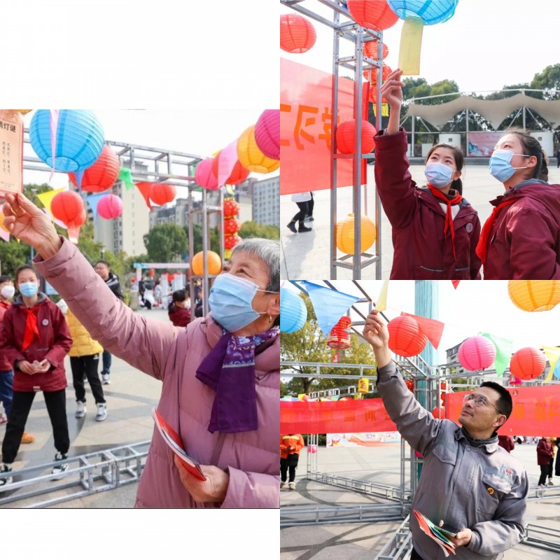 “猜灯谜”是元宵节的一项特色传统习俗。活动现场,一盏盏喜庆的大红灯笼,一张张悬挂的谜语,在场党员群众或交流探讨,或独自思考,洋溢着浓浓的学习气氛。灯谜内容丰富多彩,既有通俗易懂的趣味猜题,也有党的理论知识和廉政知识。