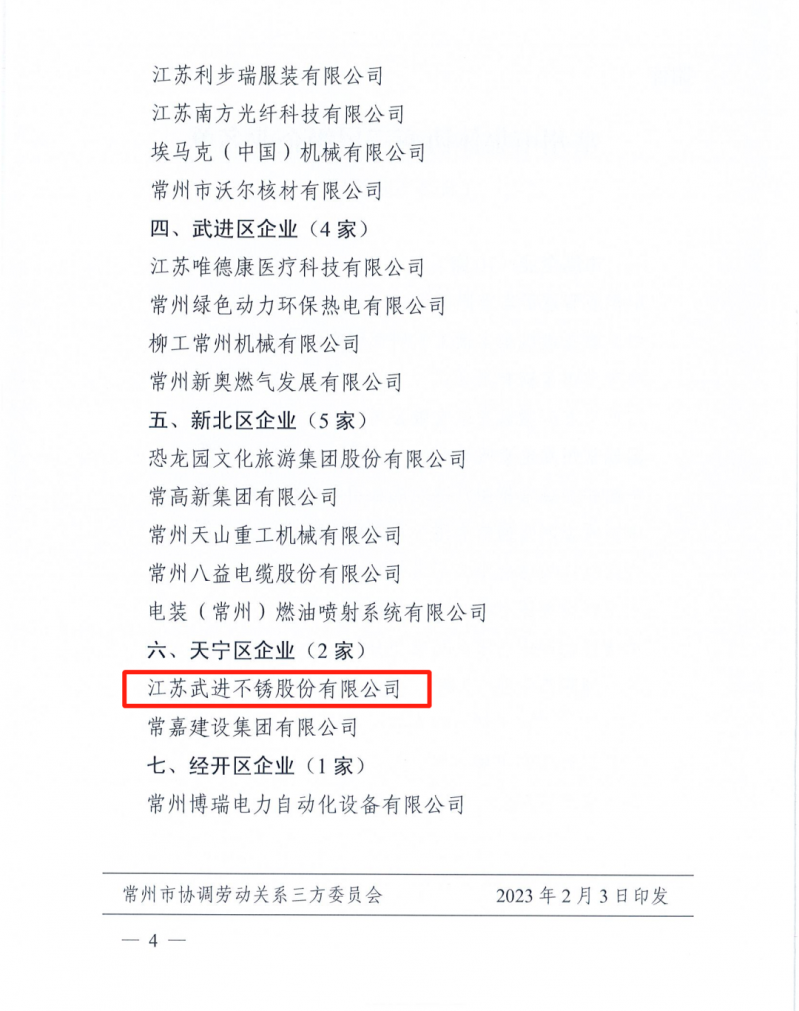 近日,美彩国际下发了《常州市关于深入开展集体协商质效评估工作的通知》,全市只有30家企业,公司位列其中,并荣获“常州市集体协商三星级企业”的称号,该星级为最高星级。